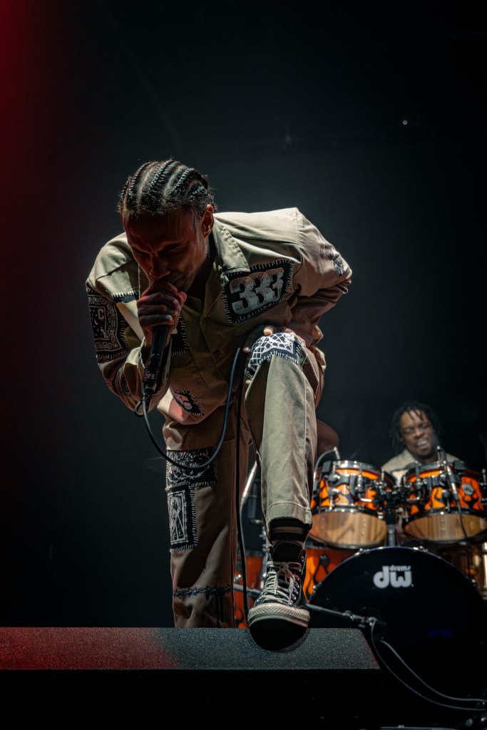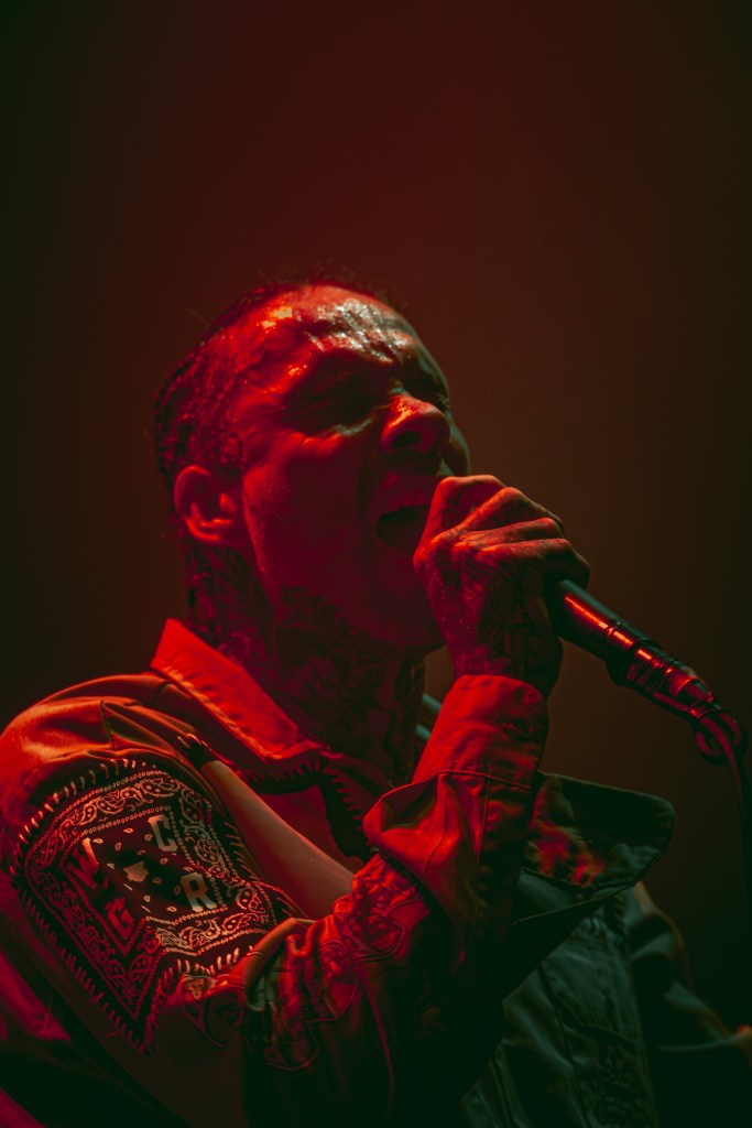Next up was FEVER 333 who if you haven’t heard the rumours or seen their stage presence you are in for a real treat. Opening their set with ‘burn it’ it felt as a headline show for the band as the crowd went absolutely crazy. Jason’s vocals are some of the best live vocals on the scene and the band are so full of energy and enthusiasm. You can definitely feel the connection between the crowd and the band and the love they have for each other. Mid set Jason took a moment to share his support for Palestine which was greeted with a huge cheer from the crowd (as if you would expect anything else from a Manchester crowd, who as a gig goer I can definitely say are the most amazing crowds to be a part of).